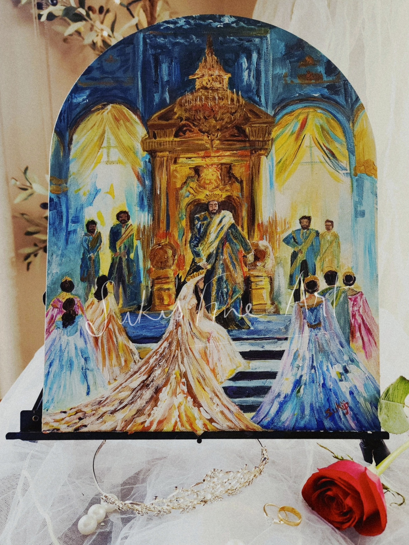 I love royal weddings. There is something regal, romantic, and beautiful about such unions. I was excited to create this painting based on a royal wedding, and I was inspired to paint it on Valentine’s Day—which made it feel even more romantic!